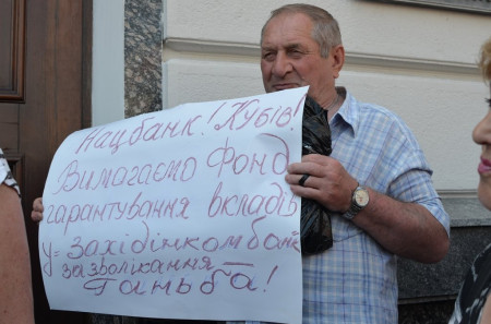 «Я завжди на всіх акціях протесту просила людей, щоб не нищили майно банку, бо це все людські гроші. Але якщо над нами знову будуть знущатись, то ми просто підемо в банк та будемо викидати їх [[/i]працівників банку, - авт.] з кабінетів», - у відчаї заявила жінка.