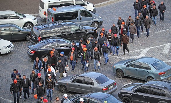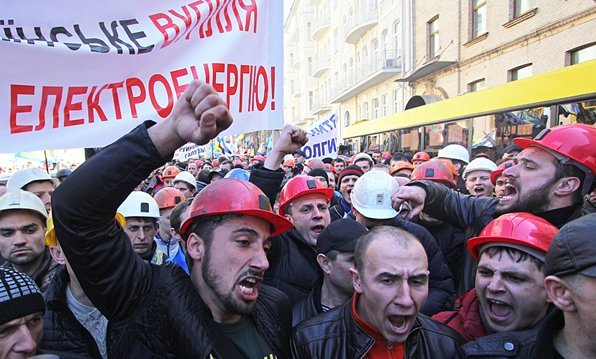 Шахтарі стукають касками і кричать їм: “Спасибі!” Колона протестувальників збирається вирушати в Адміністрації президента, - додало видання.