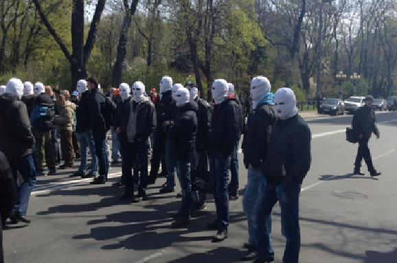 Вони скандували: "Солдати прийдуть – порядок наведуть". Під АП молодчики висунули ще більш провокаційне гасло: "Кличко – в очко".