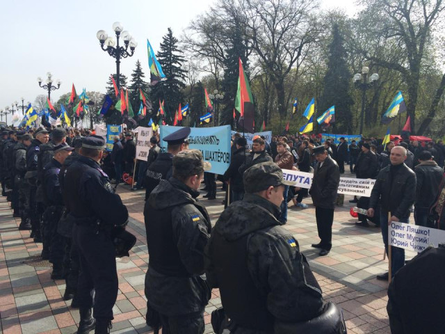 Під Верховною Радою колона, яка прийшла від Кабміну, злилася з нечисленним мітингом людей, які називають себе шахтарями.