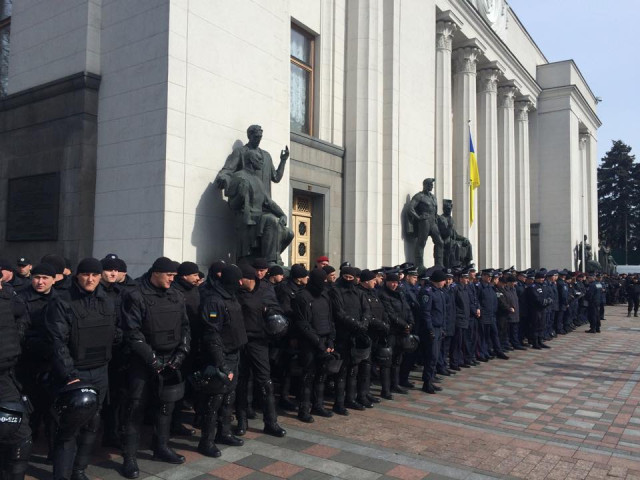 Будівля ВР оточена подвійним кордоном працівників МВС.