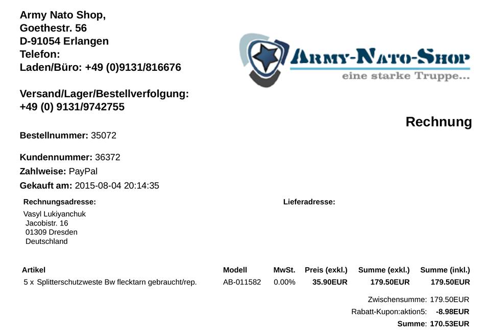 Активісти замовили жилети в Німеччині. За них потрібно сплатити до кінця тижня 170,53 євро!