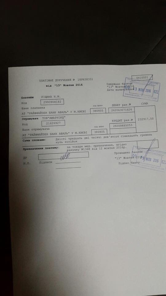 За станом на ранок 13 жовтня на картковому рахунку дружини Ліщини було вже 200 000 гривень.