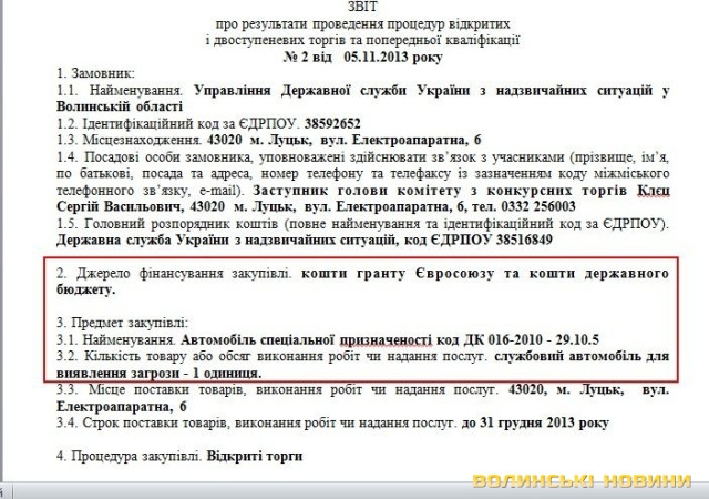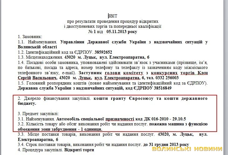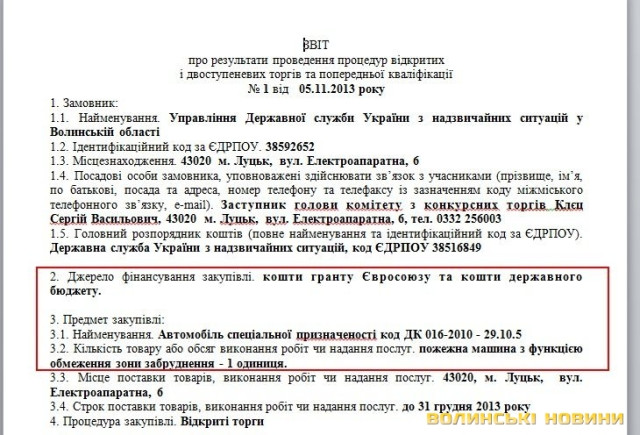 У звіті про результати проведення процедур відкритих і двоступеневих торгів та попередньої кваліфікації, опублікованому на сайті волинських рятувальників, зазначено, що частина з грошей, за які придбані нові автомобілі – кошти Євросоюзу, а частина – державні.