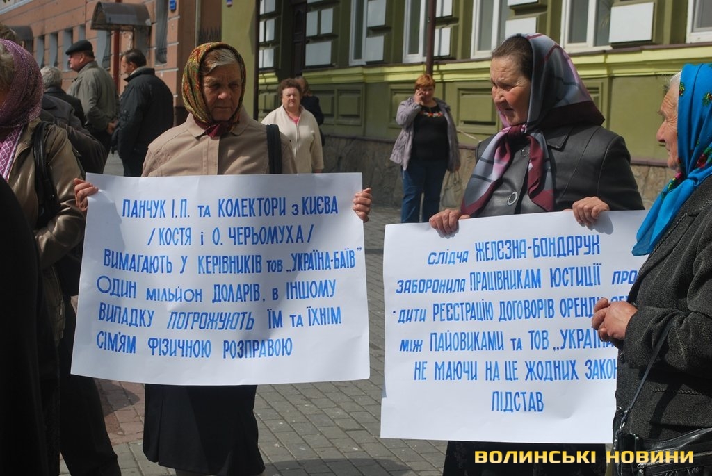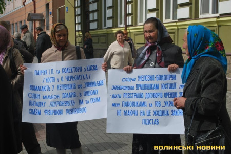 Волинські селяни вже не вперше прийшли під стіни прокуратури шукати правди. Нагадаємо, 24 березня відбувся пікет під прокуратурою. Селяни вимагали втрутитися у спір між колишніми власниками ТОВ «Україна» і зупинити свавілля правоохоронних органів.