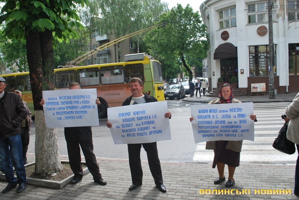 За такими подіями, бізнесмен Ігор Панчук звертається до правоохоронців Волині – зреагуйте – повне знищення господарства. Луцький райвідділок міліції реєструє заяву про кримінальне правопорушення в ЄРДР та негайно розпочинає досудове розслідування… це зараз так кажуть. Слідство там дійсно є, його очолює начальник, хід слідства перебуває на контролі у прокуратурі Луцького районі. Першими результатами слідства стало те, що уже на сьогодні жодного активу чи виробу власної продукції СГТзОВ «Україна» в контрагентів не має, звільнені всі працюючі, розірвані договори оренди майна та землі з пайовиками. Така ефективність слідства вражає. Так ось, наступним стало повне блокування доступу до отримання інформації про фінансово-господарську діяльність розграбованого підприємства, первинних документів не має, де вони дізналися лише через півроку – проте уже Управлінням МВС у Волинській області. Завершальним фактом «доброчесності» міліціянтів Луцького райвідділку стали хуліганські дії щодо бізнесмена Панчука І. дуетчиками Яремою та Павловичем в їхній же присутності, чи як кажуть бездіяльності правоохоронців при виконанні… Розшукуваний автомобіль що числиться за СГТзОВ «Україна» марки шевролет нива, як згодом дізналися відданий Павловичем одному із керівників спілки співвласників майнових паїв с. Городище Боярському Григорію Федоровичу став проявом зухвалим протиправним та жорстоким діям рейдерів. В Луцький райвідділок директором «України» місяць до описуваних подій подана заява про розшук вищезазначеної автівки, проте жодної дії не було вчинено більше місяця. Ось Ігор Панчук на території приміщень «України» в с. Баїв побачив зниклу автівку, визиває наряд міліції для її ідентифікації та фіксування слідів злочину. Приїжджають працівники правоохоронного органу – Луцького райвідділу міліції які розбираються в суті питання, підбігає Павлович з Яремою і «віддають наказ вказаному користувачу автівки Боярському Г.Ф. передати негайно Павловичу ключі і йти до домівки, а вони самі тут все вирішать». І так, Ігор Панчук реагує: просить міліції відреагуйте: затримайте, допитайте, виясніть – натомість енергійним Павловичем отримує кулаком в грудну клітку… Ярема вирішив притримати за рукав Панчука для «вигідних йому дій» Павловичем… Міліція розвернулася та поїхала…. Конфлікт закінчився тим, що в телефонному режимі Павловичу «певний Ігор Васильович» вказав віддати все ж таки автівку та припинити хуліганські дії…