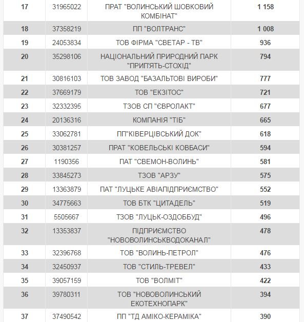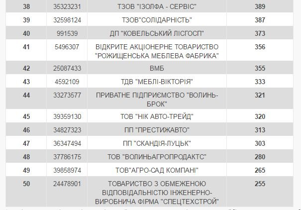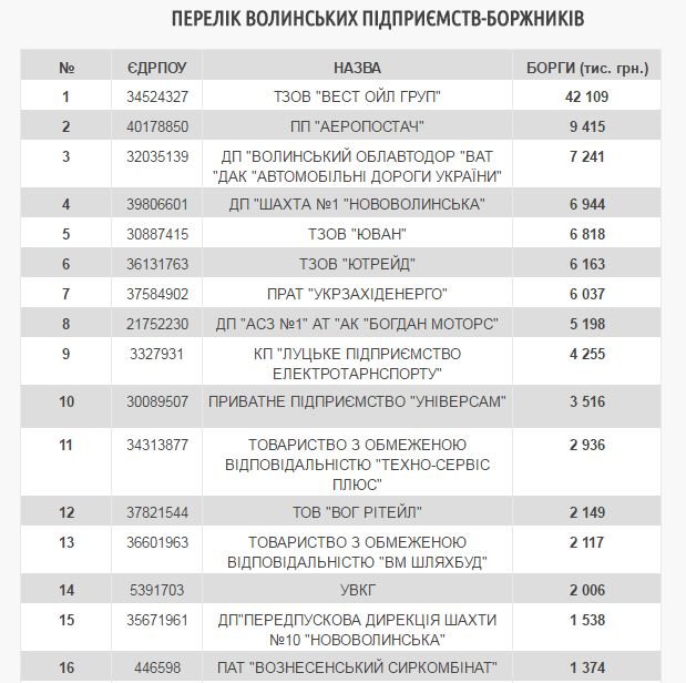 ТзОВ "Вест Ойл Груп", яким володіють нардеп Степан Івахів, бізнесмен Сергій Лагур та діти покійного Ігоря Єремеєва – Роман та Софія, більш знаний в Україні як мережа АЗК WOG. І як не дивно, саме це підприємство виявилося найбільшим податковим боржником на території Волині. Його борг складає 42,1 мільйона гривень.