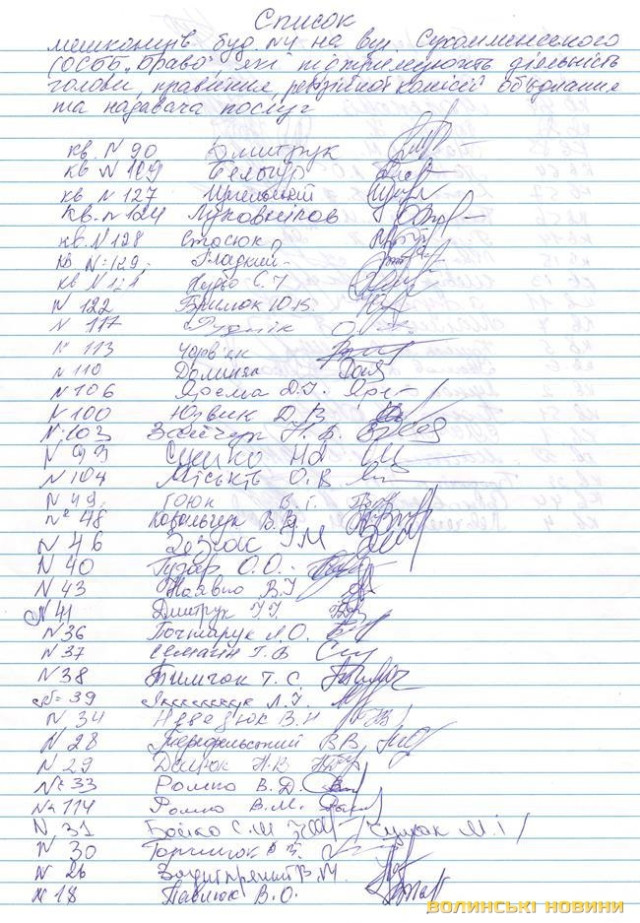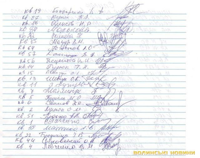 Написана скарга за дорученням мешканців будинку. Під нею жителі поставили 14 підписів.