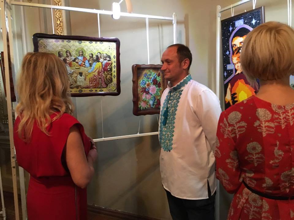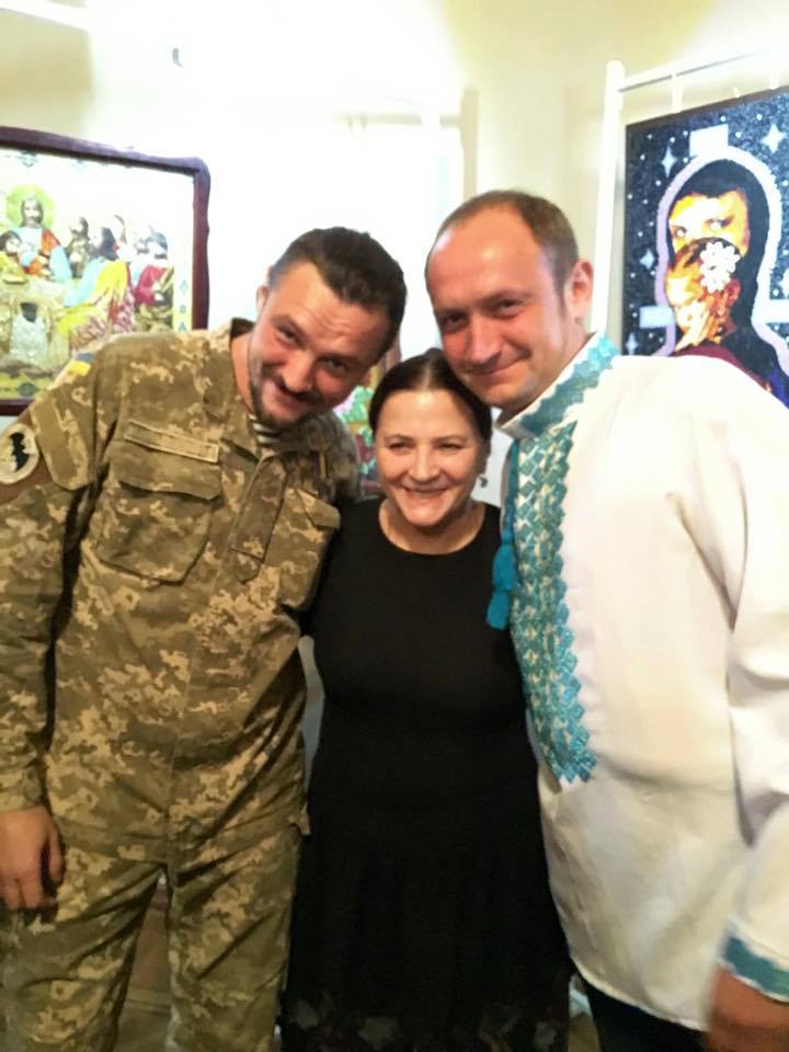 Благодійна виставка-аукціон «Мистецтво проти війни» робіт учасників АТО та їхніх дітей відбувся у Києві. Участь у заході взяв важкопоранений боєць АТО з Волині Андрій Слюсарчук, який вишиває картини бісером.