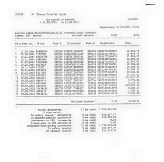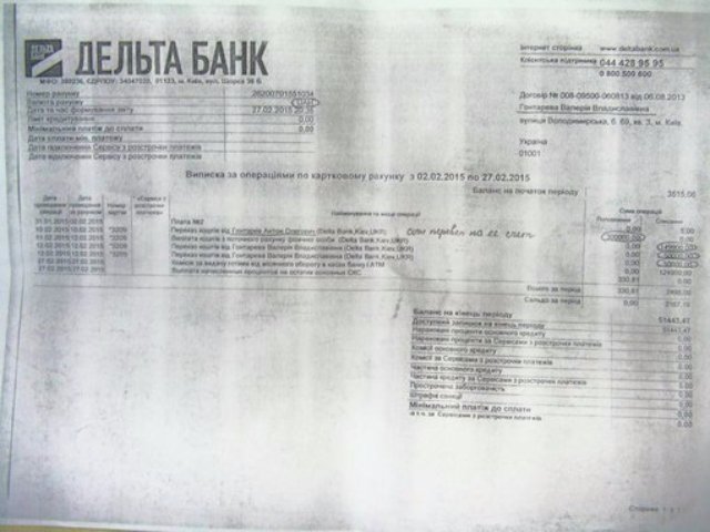 Зокрема, згідно з інформацією видання, старший син голови НБУ Валерії Гонтарєвої Антон вивів всі гроші зі свого рахунку в Дельта Банку в лютому 2015 року — перед визнанням його неплатоспроможним.