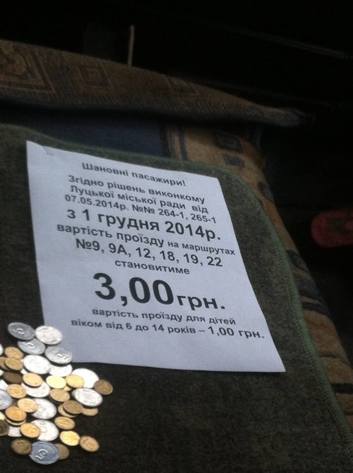 З 1 грудня ціна за проїзд на деяких маршрутах громадського транспорту зросте до трьох гривень. Так вирішили перевізники, - повідомляє "Волинський інформаційний портал".