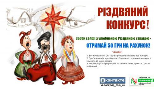 «Публікуйте ваші селфі в коментарі. Користувач, якого обере сайт random.org, за своє фото з улюбленою Різдвяною стравою, отримає поповнення мобільного телефону на 50 гривень.