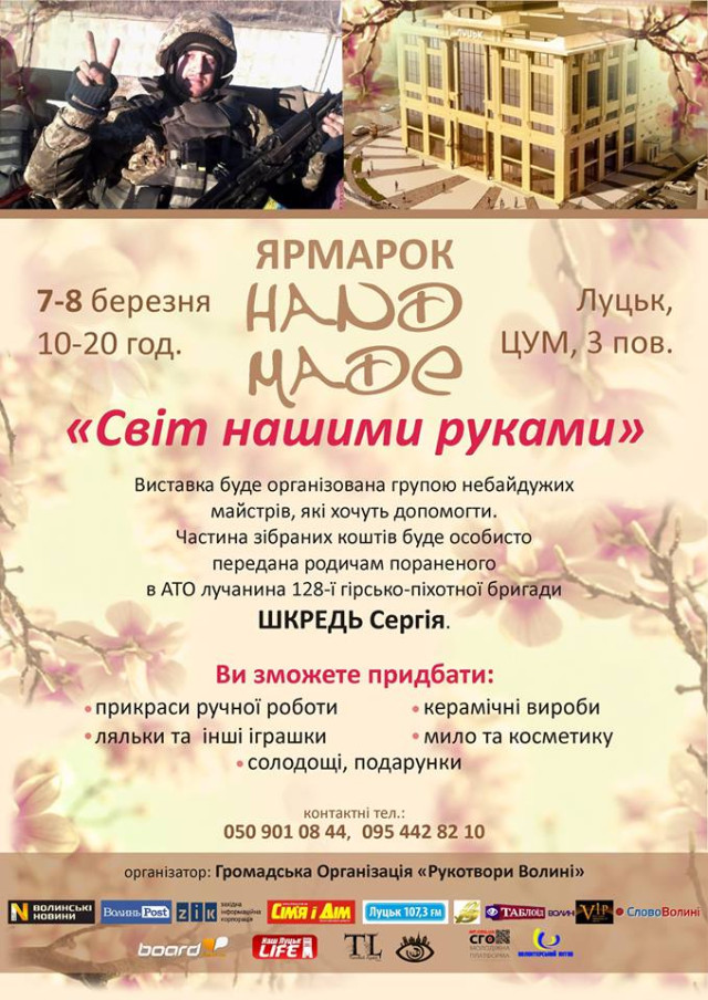 Луцькі майстри влаштовують благодійний ярмарок, аби зібрати гроші на лікування пораненого в АТО лучанина Сергія Шкредя.