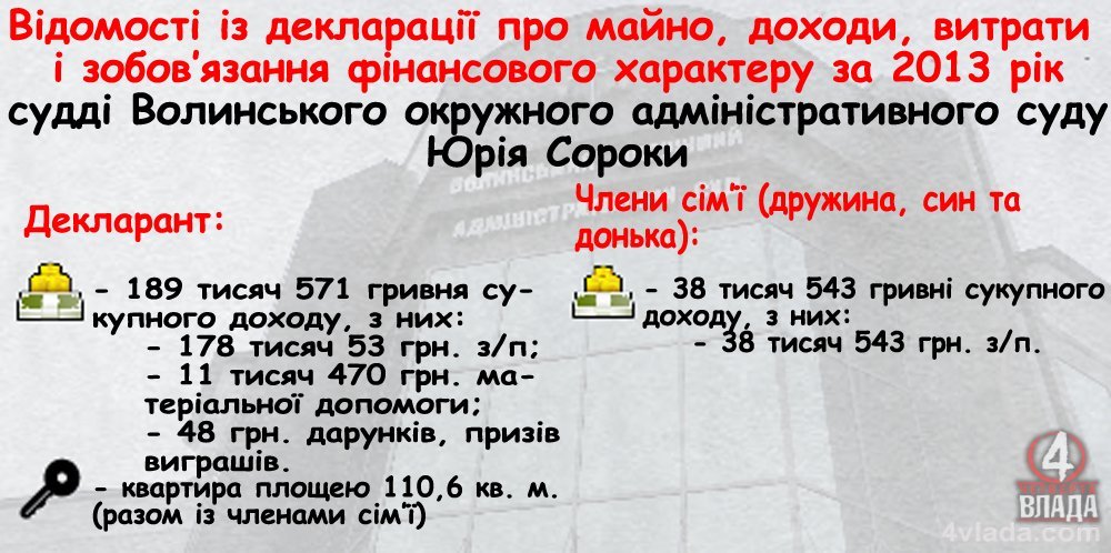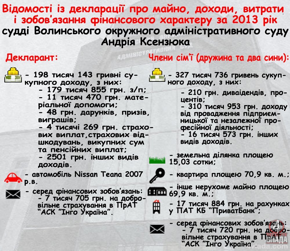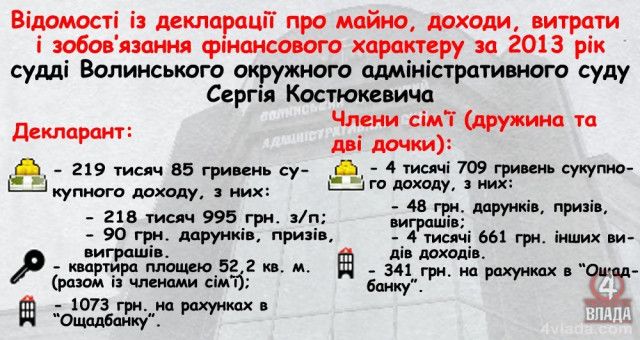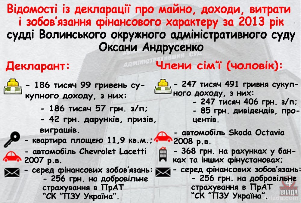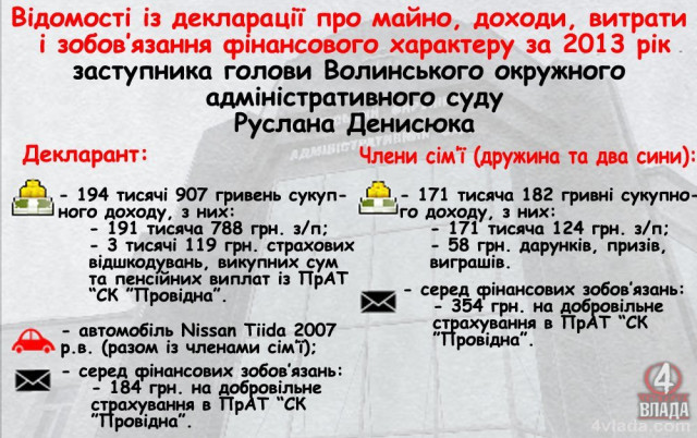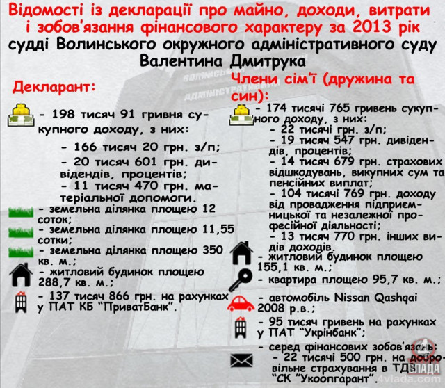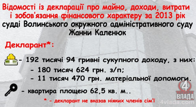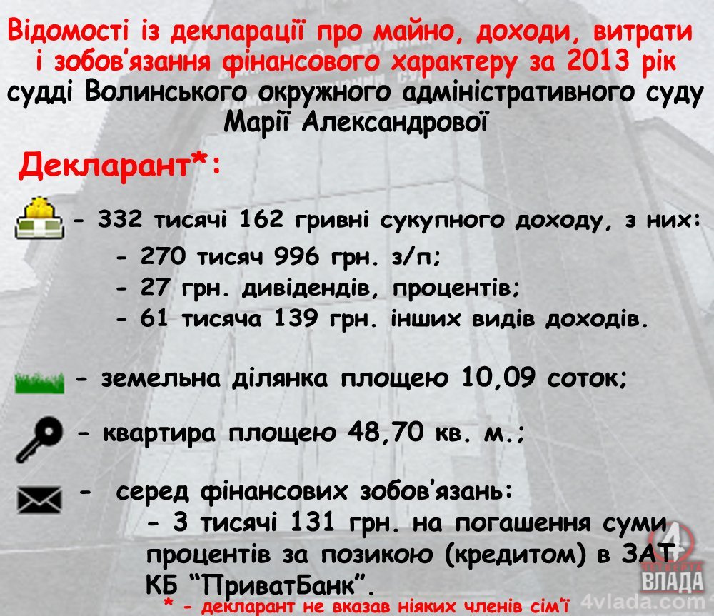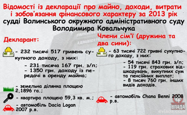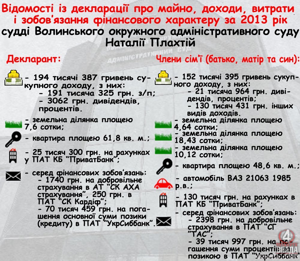Портал «Четверта влада» отримав відомості із декларацій за 2013 рік суддів Волинського окружного адміністративного суду.