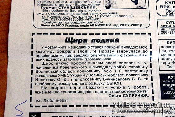 Гроші, які спритники заховали в лісі, вилучили, тож невдовзі їх повернуть власниці. За професійні і злагоджені дії працівників міліції 29-річна ковельчанка подякувала правоохоронцям на сторінках місцевої газети.