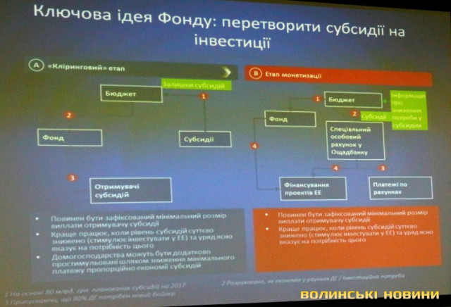 Поточний рік відзначився підвищенням тарифів за житлово-комунальні послуги для населення та, як результат, рекордною кількістю домогосподарств, що отримують житлові субсидії. Зрозуміло, що така ситуація не може тривати довго, тож нагальним питанням є перетворення субсидій на інвестиції. Саме цьому повинен слугувати Фонд енергоефективності, у створенні якого Україні фінансово сприяють Німеччина та загалом Європейський Союз. Урядовці прогнозують обсяг Фонду у розмірі до чотирьох мільярдів гривень. Яким чином планують здійснювати підтримку споживачів, які прагнуть заощаджувати енергоносії – у матеріалі Волинських Новин.