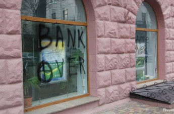 Чорною фарбою розмалювали двері та вікна приміщення, яке займає відділення Сбербанку Росії у Луцькe