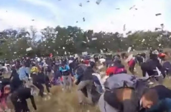 На відео, яке з’явилося в мережі, видно, як люди бігають полем із пакетами, намагаючись зібрати якомога більше однодоларових купюр. Загалом на збір банкнот прийшло близько чотирьох тисяч людей.