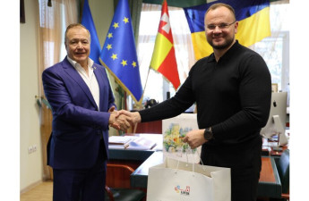 Луцький міський голова Ігор Поліщук зустрівся з міським головою міста Південне Одеської області Володимиром Новацьким та його заступниками, які приїхали до обласного центру Волині в межах національного проєкту «Пліч-о-пліч: згуртовані громади».