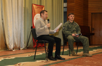 Під час зустрічі студенти мали змогу поставити запитання, які їх цікавили, й отримати на них розгорнуті відповіді. Обговорювали різні теми: від особливостей бойових вильотів і викликів, з якими стикаються українські пілоти, до загальної ситуації в Повітряних силах і перспектив розвитку української військової авіації.