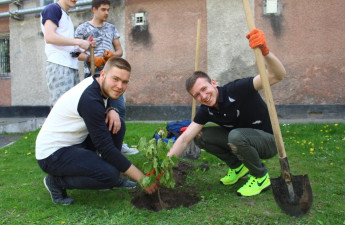 Студенти факультету міжнародних відносин Східноєвропейського університету імені Лесі Українки ініціювали посадку дерев біля чотирьох корпусів вишу на вулиці Винниченка