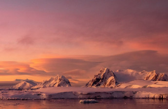 Рожевий присутній в Антарктиці: це колір світанків та заходів сонця в гарну погоду, тобто коли небо не затягнуте хмарами. Оскільки кольори неба відбиваються в океані, то навколо весь світ стає безмежно рожевим.