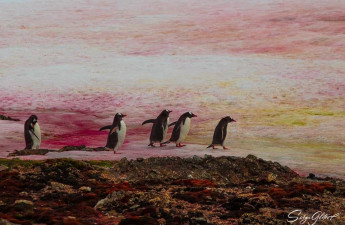 В Антарктиці біля української станції «Академік Вернадський» сніг став рожевого кольору. За словами вчених, рожеві візерунки на білому покриві – це «цвітіння» снігу наприкінці антарктичного літа.