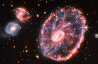 Цей космічний катаклізм змінив форму та структуру галактики, утворивши дві кільцеподібні структури. Одна з них оточує галактичний центр, а інша обрамлює всю галактику.
