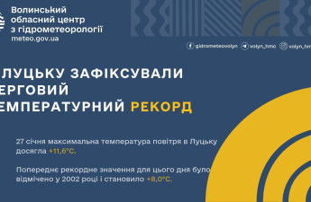 За даними спостережень метеостанції, 29 січня максимальна температура повітря в Луцьку досягла +13,5°С. Попереднє рекордне значення для цього дня було відмічено у 2002 році й становило +10,4°С.