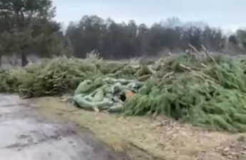 «Боляче на це дивитися»: у мережі показали кладовище ялинок у Києві. Відео