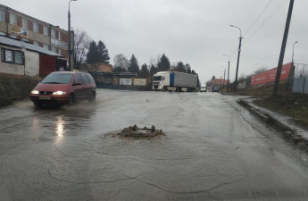 Посеред дороги б'є фонтан: у Луцьку затопило одну із вулиць