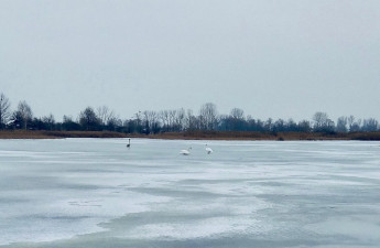 У селі Смідин Старовижівського району замерзло озеро, на якому зимують лебеді. Громадян кличуть врятувати птахів
