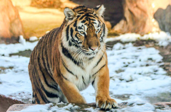 Ранковий сніжок сподобався луцькому тигру Тамерлану, який вийшов на прогулянку у «Луцькому зоопарку». Побачивши фотографа, цей великий котик почав позувати, а подекуди й облизувався