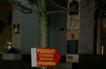 Невідомі на вулиці Лесі Українки прикрутили рекламну табличку на нещодавно висаджене дерево