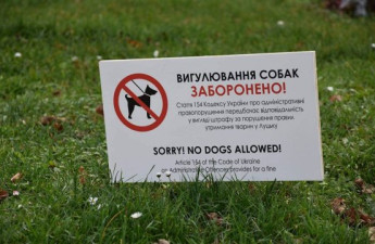 У сквері, що розташований поруч з будівлею Луцької міської ради, школярі зламали таблички про заборону вигулу собак, які лише вчора встановили