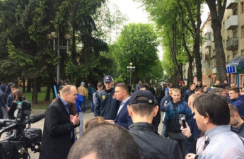 Під будівлею Рівненської ОДА сьогодні, 3 травня, пройшов мітинг. Понад 100 людей, які вимагали легалізації видобутку бурштину.