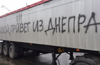 Чотири 40-тонні вантажівки з львівським сміттям обмалювали написами «Львівське сміття їде додому» та «Садовий, привіт з Дніпра».