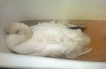 Один з лебедів, який прилетів зі зграєю та прижився на річці у парку Слов’янський, що у Володимирі-Волинському, отримав сильне обмороження.