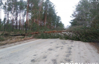 Внаслідок сильних поривів вітру при в'їзді у село Черче, що у Камінь-Каширському районі, на дорогу звалилося дерево та заблокувало рух транспорту