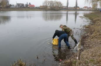 З метою підтримання сприятливого гідрологічного режиму та санітарного стану ставка на річці Сапалаївці поблизу вулиці Теремнівської в Луцьку (біологічна меліорація шляхом зариблення рослиноїдними видами риб) в понеділок, 7 березня, відбулось зариблення цього ставка