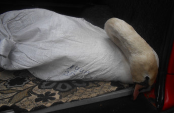 Закривавленого лебедя, якого 13 січня знайшли на річці Луга з перебитим крилом, прихистили у КП «Ласка»