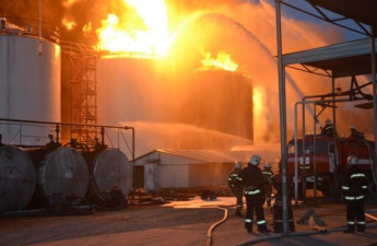 За станом на 7 ранку 9 червня гасіння пожежі на території нафтобази ТОВ "Побутрембудматеріали" у Глевасі під Києвом триває