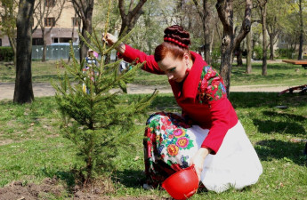 Липи, ялини, горобину та калину висадила молодь в сквері Героїв Майдану
