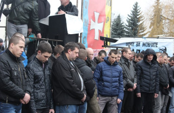 На колінах: Беркут в центрі міста вибачається перед лучанами