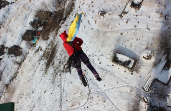 Стрибки "Роупджампінг" розпочалися в Луцьку на підтримку Євромайдану. Упродовж двох днів приблизно сотня людей "ловитиме" гострі відчуття в альпіністському спорядженні, стрибаючи з 52-х метрової труби