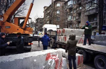 На розі вулиць Інститутської та Шовковичної в Києві почали розбирати барикаду, створену владою з бетонних блоків вночі