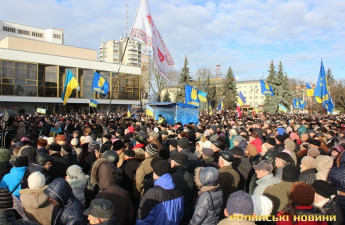 Народне віче «Майданом стає вся Україна» розпочалося у Луцьку на театральній площі сьогодні о 13. 00