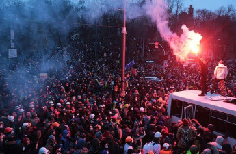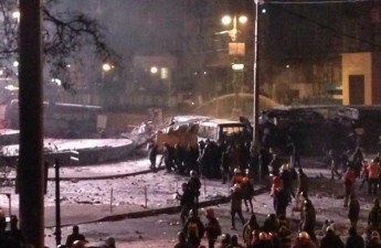 На вулиці Грушевського у Києві триває протистояння між силовиками та протестувальниками. Протестувальники продовжують бити в барабани