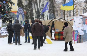 Вчора і сьогодні люди масово їдуть в столицю з Луцька. Зранку до палаток мітингувальників, які розташовані на Театральному майдані, приходять люди й записуються у поїздку