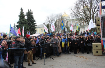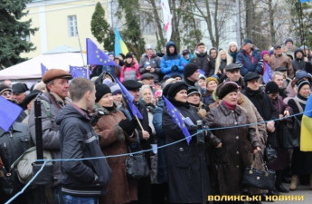 Відправити у відставку за зраду національних інтересів Президента України, Уряд, голову Волинської облдержадміністрації та розпустити Волинську обласну раду вимагають учасники Народного віча, що відбулося на Театральному майдані у Луцьку
